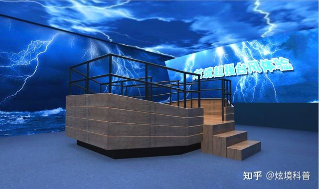 臺風(fēng)體驗(yàn)館現(xiàn)場模擬效果逼真,音效一流,立體感強(qiáng)。運(yùn)用影音、風(fēng)效和電子噴霧技術(shù),通過噴霧、燈光、出風(fēng)、音響、影像多媒體等系統(tǒng),為體驗(yàn)者模擬出一個臺風(fēng)來臨時的真實(shí)場景。